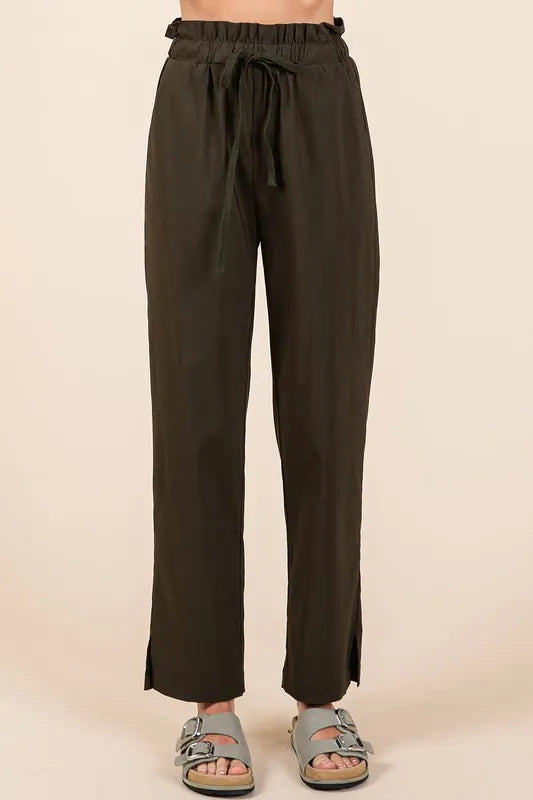 Mittoshop Paperbag Waist Tapered Straight Pants