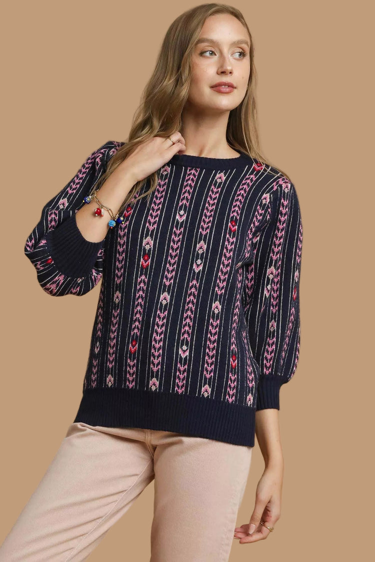 Denise Jacquard Knit Puff Sleeve Sweater